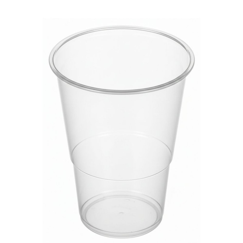 Vasos de Plástico Transparentes de PP (Polipropileno) con capacidad para 240 ml. Estos vasos desechables de plástico son ideales para agua, refrescos, cervezas, tanto bebidas calientes como frías.