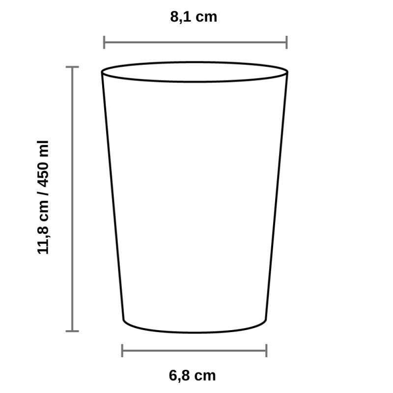 Se presentan en cajas de 350 unidades, divididas en 35 paquetes de 10 vasos, lo que facilita su almacenamiento y distribución en eventos o establecimientos con alta rotación. Su diseño recto y boca ancha, con 8,1 cm de diámetro superior y 11,8 cm de altura, permite un uso cómodo para sidra, cervezas, combinados, cócteles o refrescos. Además, su estructura reutilizable soporta varios lavados sin deterioro y puede reciclarse al final de su vida útil, aportando valor ecológico a tu servicio.